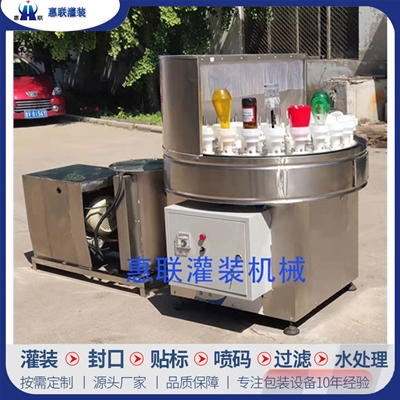 青州市惠聯灌裝機械有限公司是一家集生產研發、銷售、服務于一體的液體灌裝成套設備生產企業,可根據廠家要求設計合理液體灌裝生產線,為用戶提供技術咨詢、設計工藝、場區平面布置、工藝改造、設備安裝調試等完善服務。 公司生產制造各種類型液體灌裝機、過濾機,水處理設備及液體灌裝成套設備。主要產品有:白酒、葡萄酒、黃酒等酒水灌裝機、食用油、機油、潤滑油等油類灌裝機、醬油醋、老抽、生抽等調味品灌裝機、防凍液、玻璃水灌裝機、酒精、84消毒液灌裝機、車用尿素灌裝機、口服液灌裝機、洗滌劑灌裝機等多種液體、膏體灌裝設備,全自動/半自動灌裝機型號多,規格全,洗瓶機、瓶子封口機、打塞機、熱縮機、瓶子烘干機、貼標機、噴碼機、輸送線、裝箱機、水處理設備等全套生產線相關配套設備齊全,自產自銷,一站式購齊,售后無憂。